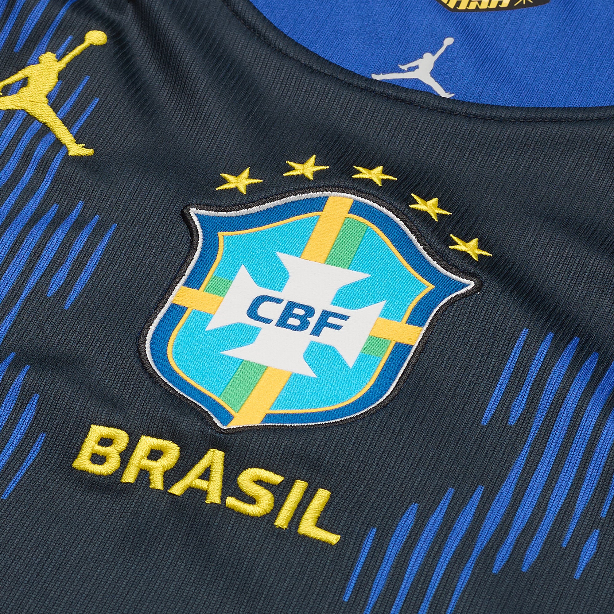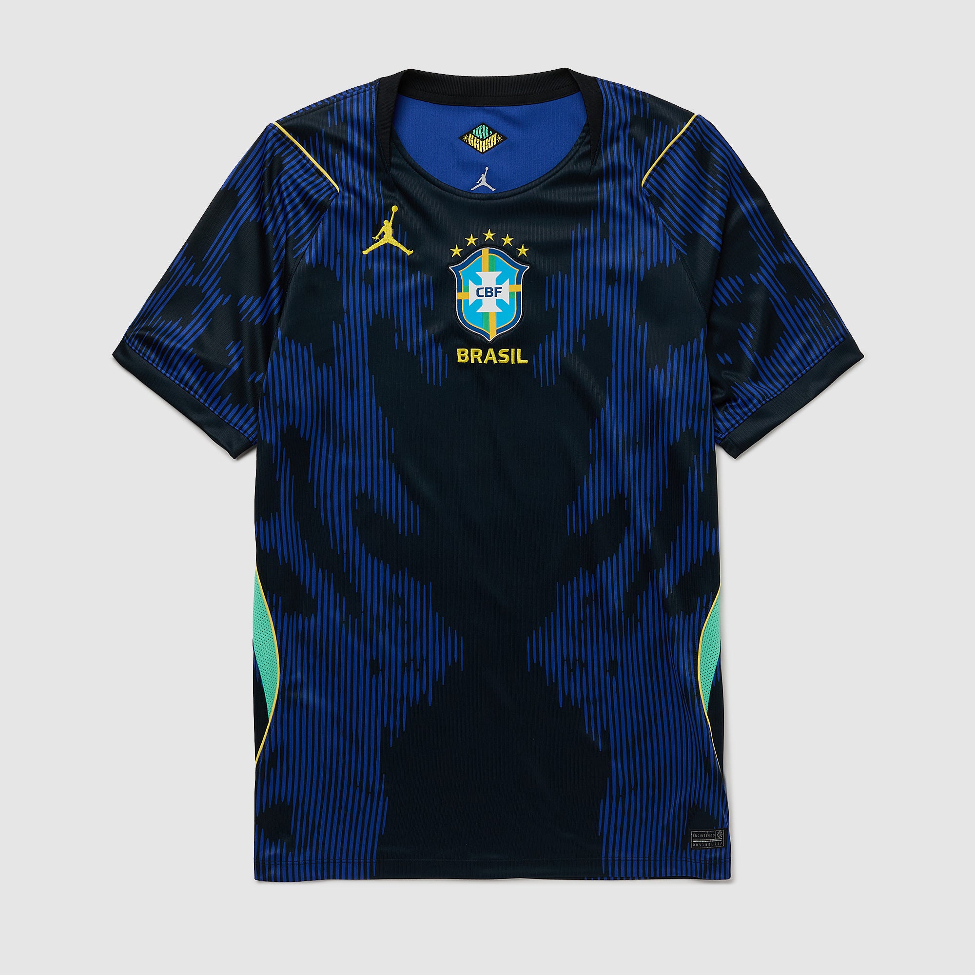 Based on the kits worn by Vinicius Junior, Rodrygo, Marquinhos, Casemiro, Estevao and the rest of a star-studded squad at the pinnacle of international football, the 2026 away shirt shows your support for Brazil as they travel to North America, take on Morocco, Scotland and Haiti in Group C, and set their sights on the FIFA World Cup trophy. A smart black base is elevated with sporty Old Royal contrast accents and the famed Jordan Jumpman logo to create a stylish addition to your on or off-pitch wardrobe, and the legendary Confederacao Brasileira de Futebol (CBF) crest takes pride of place over the heart to display your passion for all to see.The ultra-lightweight, flexible construction provides full freedom of movement, so you can sprint across the turf, slide into tackles and leap into aerial challenges without restriction. Breathable, sweat-wicking Dri-FIT performance fabric promotes airflow, absorbs moisture and dries quickly to keep you cool, dry and comfortable as you push past your limits, whether you're straining to hit a new personal best in the gym, honing your technique in training, fighting to win every duel on the pitch or wildly celebrating a vital win at the 2026 World Cup.