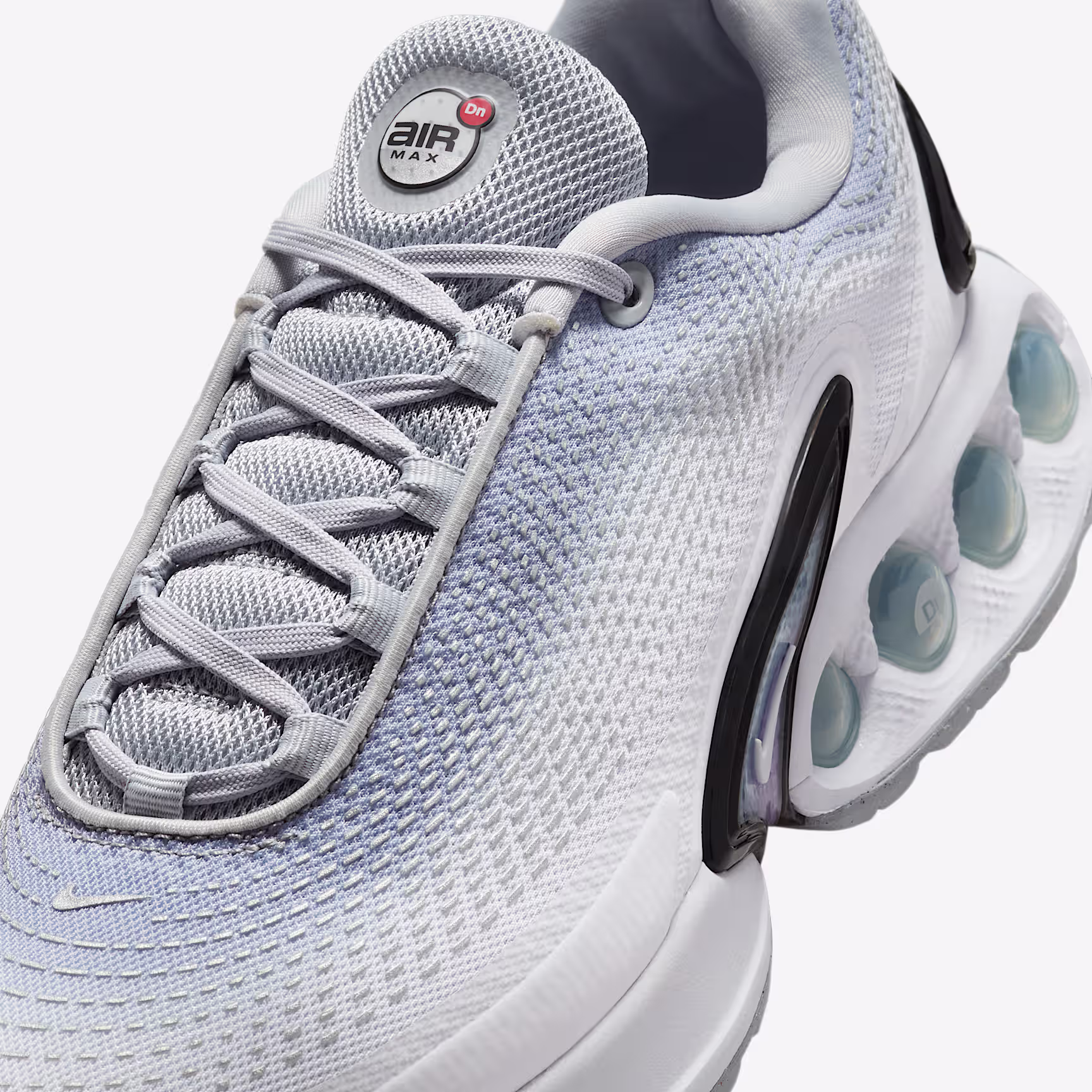 The Air Max Dn features our Dynamic Air unit system of dual-pressure tubes, creating a responsive sensation with every step. This results in a futuristic design that's comfortable enough to wear from day to night. Plus, this premium version has a gradient treatment for an elevated finish. Go ahead—Feel The Unreal
