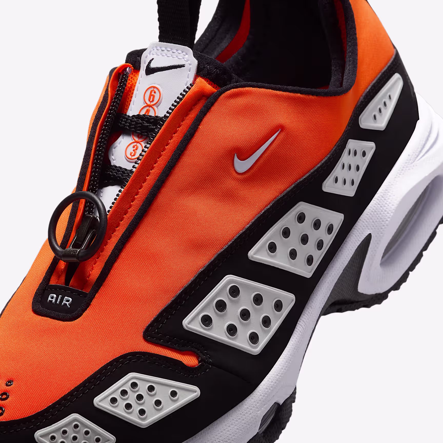 Ahead of its time in '99, the innovative Air Max SNDR is back and louder than ever. From the secure fit around the heel to the zip-up shroud, this legendary sneaker continues to break the mould. It comes equipped with Max Air cushioning in the heel and Nike Air in the forefoot for exceptional bounce and comfort. Unzip the shroud to reveal "6453", a nod to the last 4 digits of Nike's office numbers around the world, which spell out N-I-K-E on the keypad.