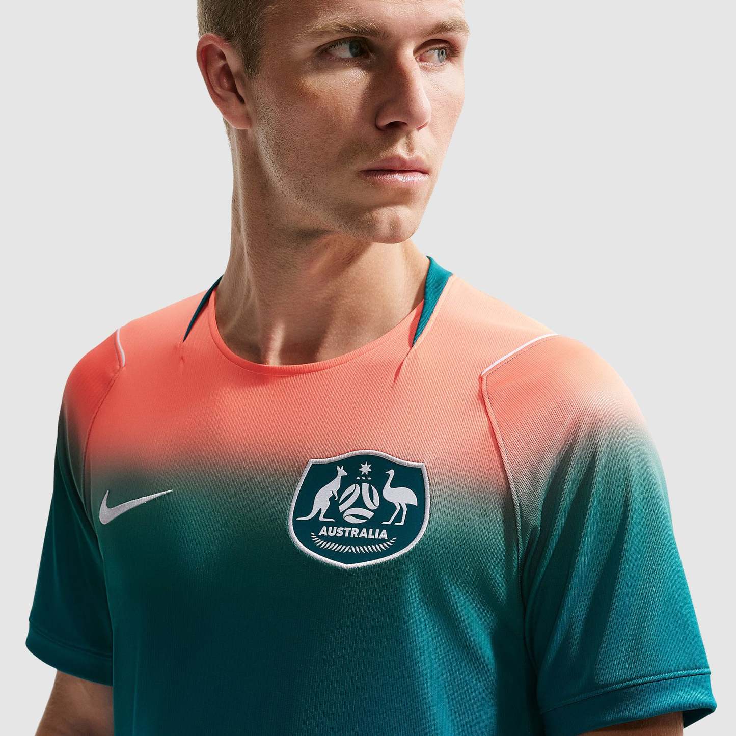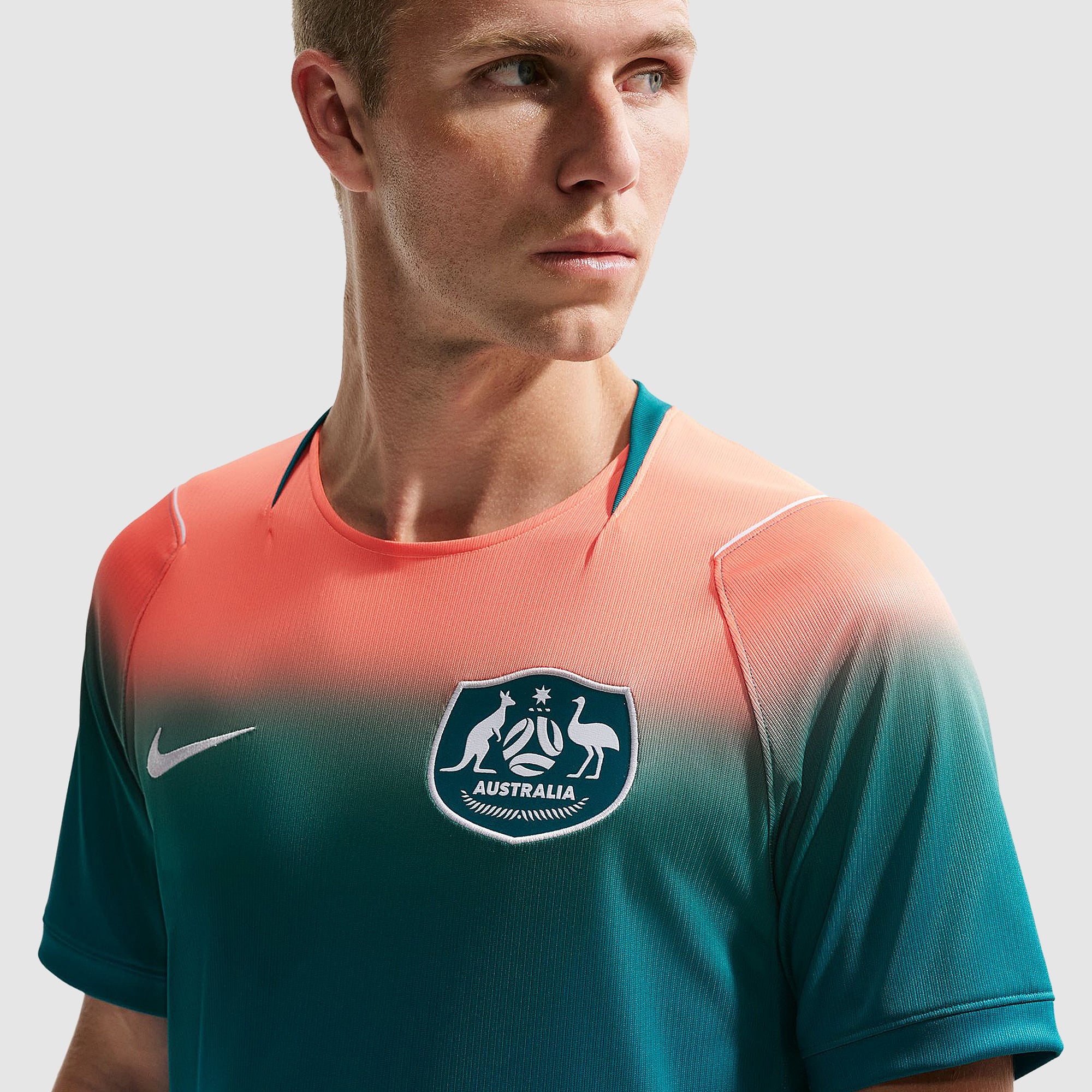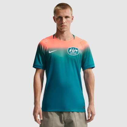 Based on the kits worn by Jackson Irvine, Jordan Bos, Riley McGree, Nestory Irankunda, Mohamed Toure and the rest of a star-studded squad at the pinnacle of international football, the 2026 away shirt shows your support as Australia travel to North America, take on the likes of Japan and Tunisia in Group F, and set their sights on the FIFA World Cup trophy. A rich Bright Spruce base is elevated with a vibrant Orange Pulse gradient at the shoulders to create an eye-catching look that helps you stand out from the crowd, and a Socceroos crest emblazoned over the heart displays your passion for all to see.The ultra-lightweight, flexible construction provides full freedom of movement, so you can sprint across the turf, slide into tackles and leap into aerial challenges without restriction. Breathable, sweat-wicking Dri-FIT performance fabric promotes airflow, absorbs moisture and dries quickly to keep you cool, dry and comfortable as you push past your limits, whether you're straining to hit a new personal best in the gym, honing your technique in training, fighting to win every duel on the pitch or wildly celebrating a vital win at the 2026 World Cup.
