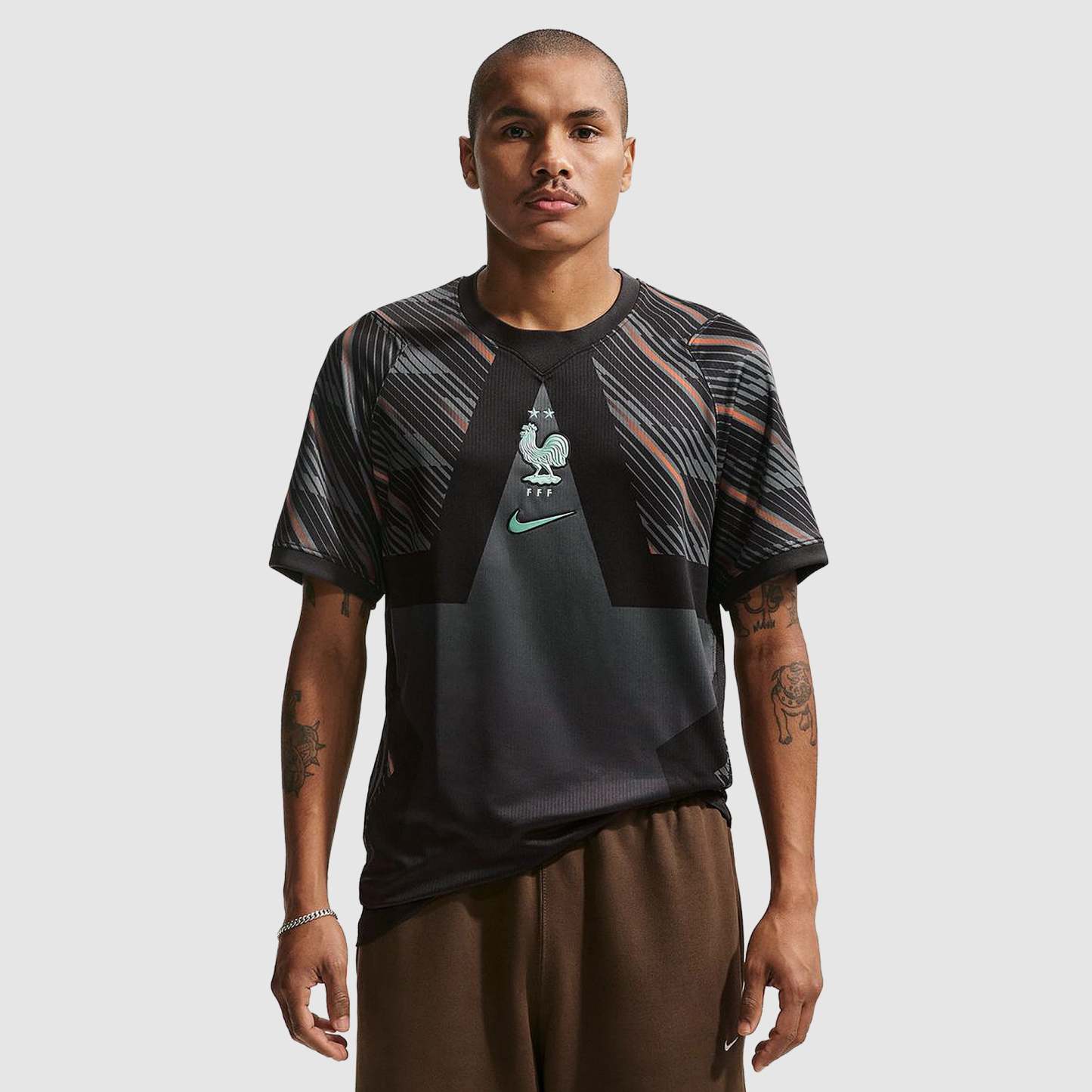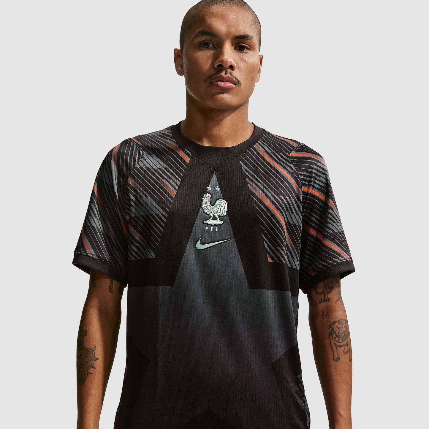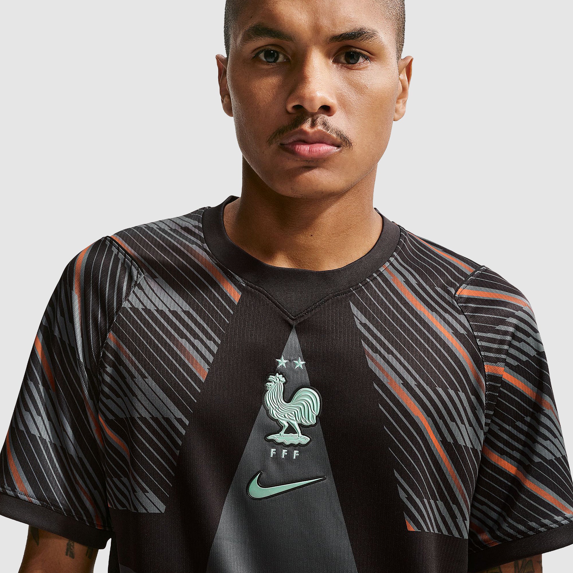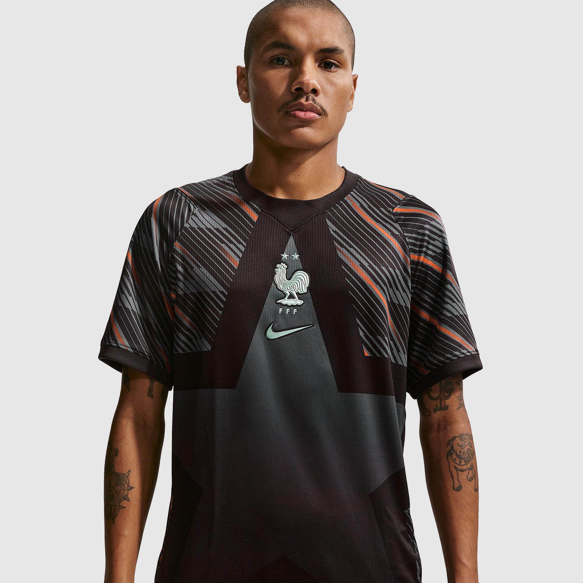 Based on the kits worn by Mike Maignan, Lucas Chevalier and the rest of the France goalkeeping group at the pinnacle of international football, the 2026 GK shirt shows your support for Les Bleus as they travel to North America, take on the likes of Senegal and Norway in Group I, and set their sights on the FIFA World Cup trophy. Sleek Black and Medium Ash colours are enhanced with a bold star design and swirling tonal patterns to evoke the Walk of Fame and give shot-stoppers a chance to take centre stage and capture the spotlight, and the iconic Federation Francaise de Football (FFF) Gallic rooster crest emblazoned over your heart displays your passion for the world to see.The ultra-lightweight, flexible construction provides full freedom of movement, so you can leap to claim lofted balls, sprint off your line to smother a shot in a one-on-one and make split-second reflex saves to keep your side in the game throughout the 90 minutes. Breathable, sweat-wicking Dri-FIT performance fabric promotes airflow, absorbs moisture and dries quickly to keep you cool, dry and comfortable as you push past your limits, whether you're straining to hit a new personal best in the gym, honing your technique in training, or wildly celebrating a vital win at the 2026 World Cup.