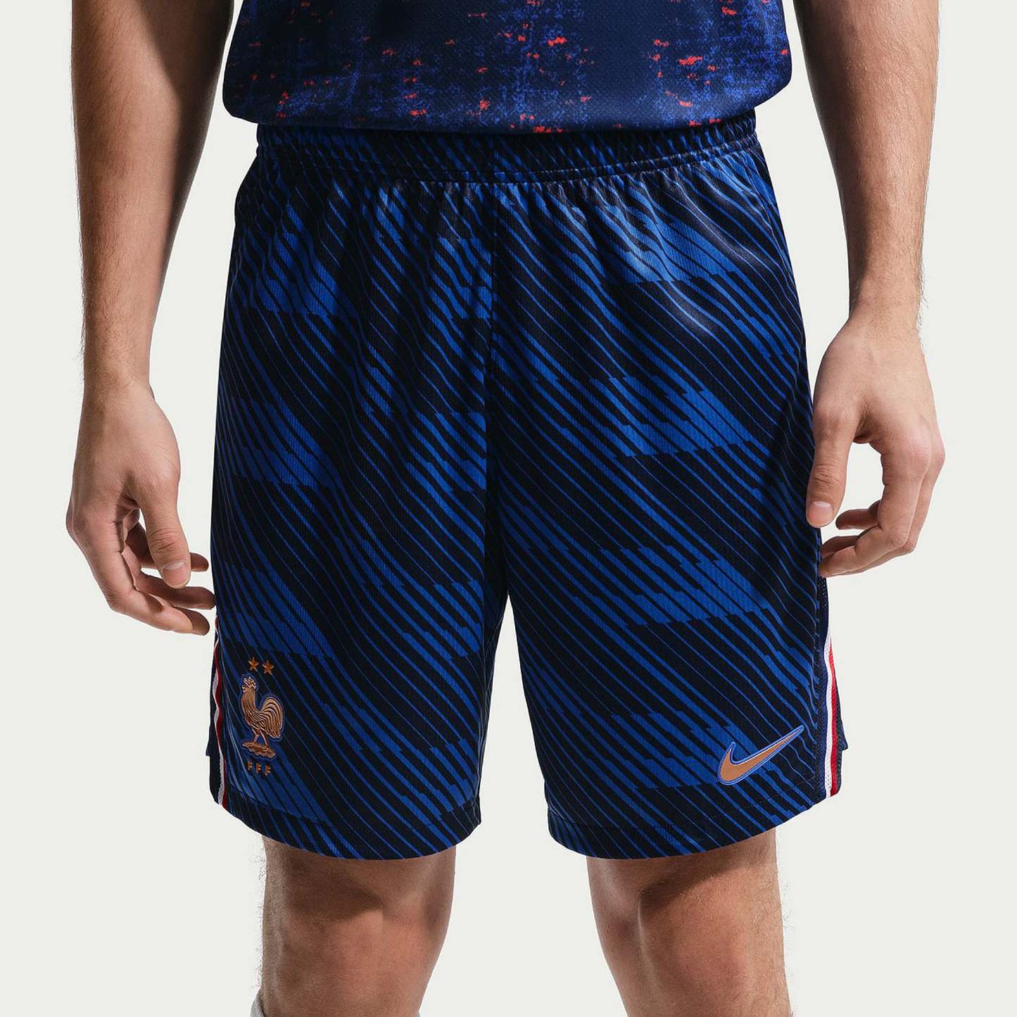 Based on the kits worn by Kylian Mbappe, William Saliba, Ousmane Dembele, Michael Olise, Dayot Upamecano and the rest of a star-studded squad at the pinnacle of international football, the 2026 home shorts show your support for France as they travel to North America, take on the likes of Senegal and Norway in Group I, and set their sights on the FIFA World Cup trophy. Designed in tribute to the historical connection between France and their American tournament hosts, bold Metallic Copper detailing nods to the Statue of Liberty – which France gifted to the USA in 1886 to commemorate 100 years since the American Declaration of Independence – and the iconic Federation Francaise de Football (FFF) Gallic rooster crest displays your passion for all to see.