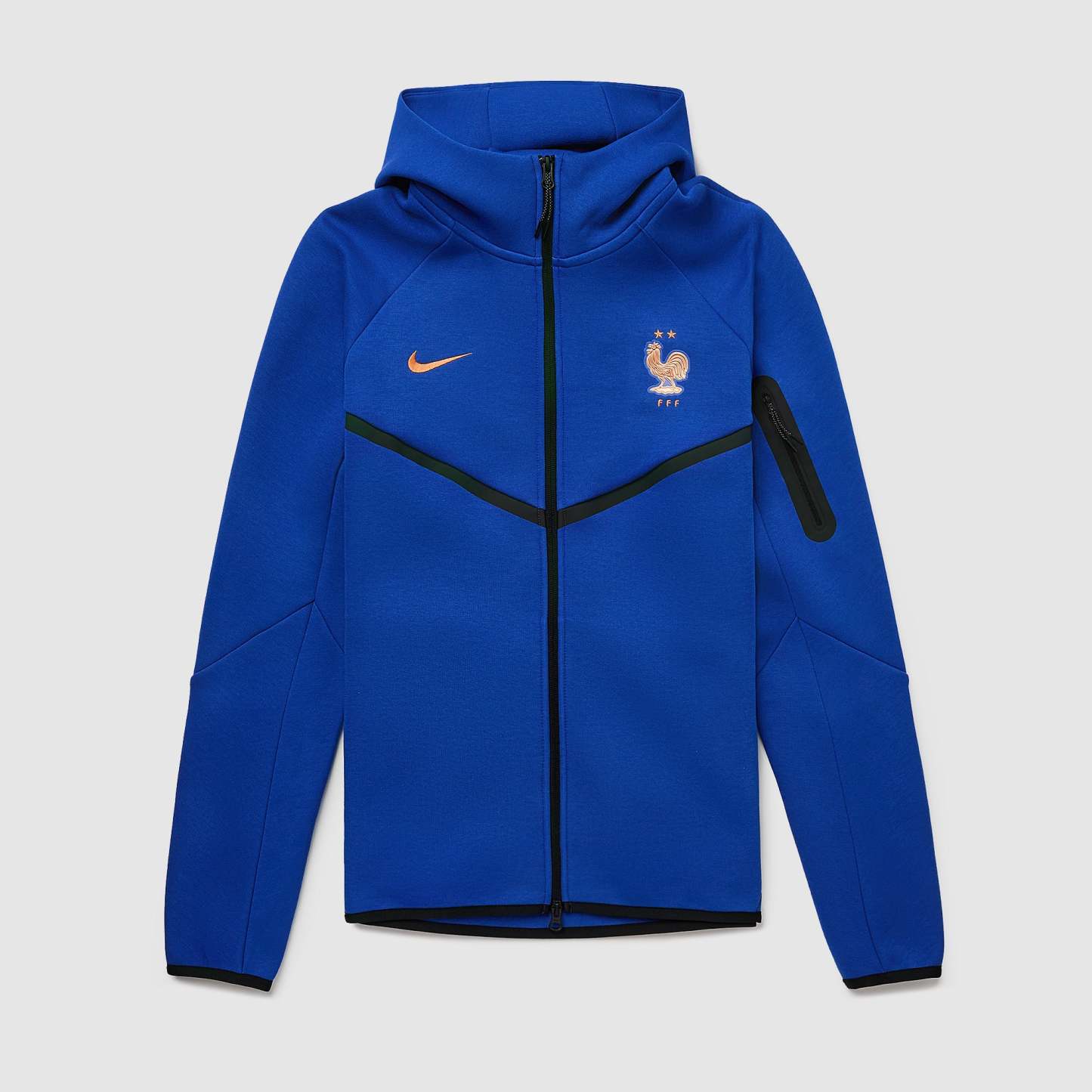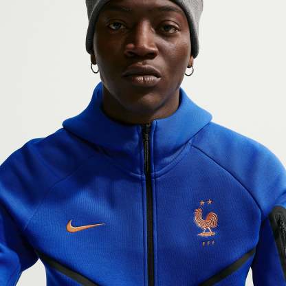 Part of the France 2026 World Cup off-pitch range, the Nike Tech Fleece Windrunner Hoodie shows your support for Kylian Mbappe, William Saliba, Ousmane Dembele, Michael Olise, Dayot Upamecano and the rest of a star-studded squad as they travel to North America, take on the likes of Senegal and Norway in Group I, and set their sights on the FIFA World Cup trophy. The bold Game Royal base combines with the iconic Windrunner styling to create a sporty, versatile look that easily complements the rest of your fit, and the legendary Federation Francaise de Football (FFF) Gallic rooster crest emblazoned over your heart displays your passion for the world to see.Made from Nike’s smooth, lightweight Tech Fleece fabric, this hoodie insulates heat to keep you warm and comfortable through chilly days, perfect for travel, training or casual days. Zipped pockets allow you to securely store small items, handy for phones and keys.