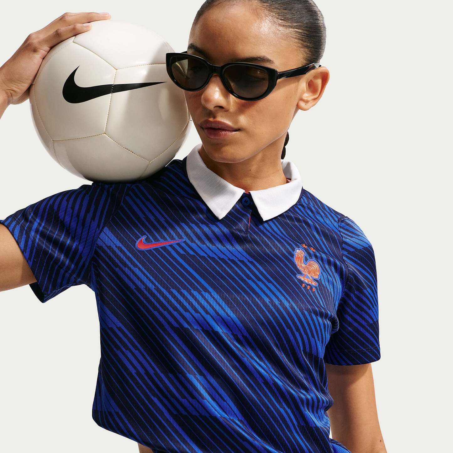 Based on the kits worn by Kylian Mbappe, William Saliba, Ousmane Dembele, Michael Olise, Dayot Upamecano and the rest of a star-studded squad at the pinnacle of international football, the 2026 home shirt shows your support for France as they travel to North America, take on the likes of Senegal and Norway in Group I, and set their sights on the FIFA World Cup trophy. Designed in tribute to the historical connection between France and their American tournament hosts, the traditional Game Royal home colours are accented with bold Metallic Copper detailing that nods to the Statue of Liberty – which France gifted to the USA in 1886 to commemorate 100 years since the American Declaration of Independence. The iconic Federation Francaise de Football (FFF) Gallic rooster crest takes pride of place over the heart to display your passion for all to see.The ultra-lightweight, flexible construction provides full freedom of movement, so you can sprint across the turf, slide into tackles and leap into aerial challenges without restriction. Breathable, sweat-wicking Dri-FIT performance fabric promotes airflow, absorbs moisture and dries quickly to keep you cool, dry and comfortable as you push past your limits, whether you're straining to hit a new personal best in the gym, honing your technique in training, fighting to win every duel on the pitch or wildly celebrating a vital win at the 2026 World Cup.