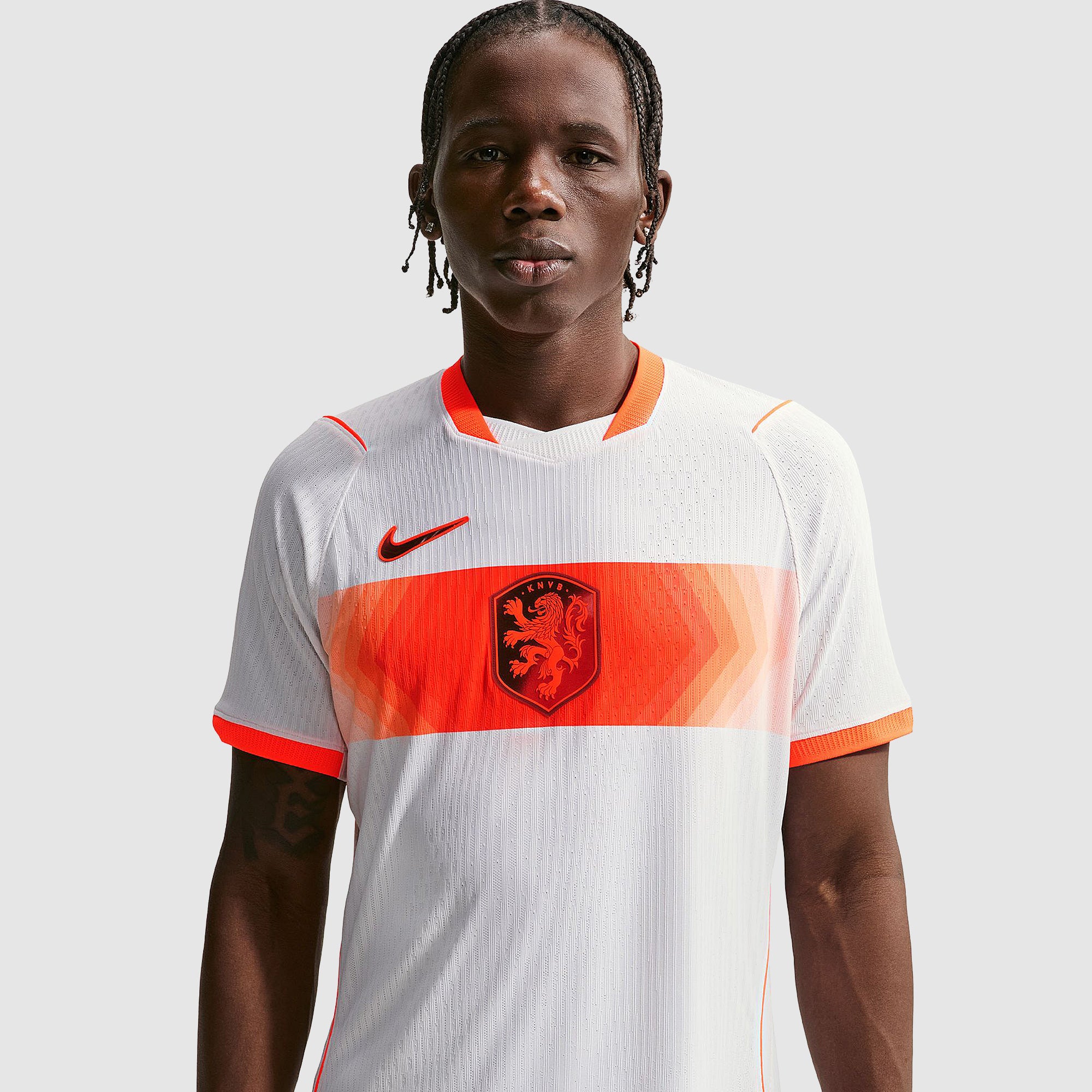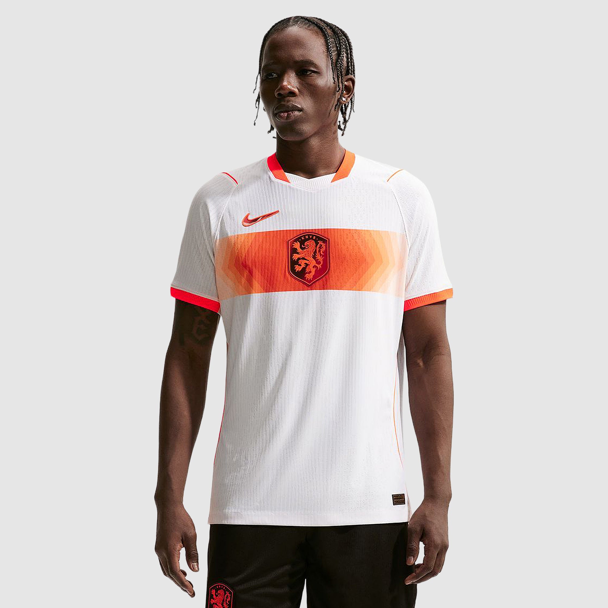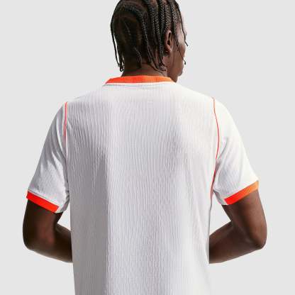 Worn by Virgil van Dijk, Frenkie de Jong, Tijjani Reijnders, Matthijs de Ligt and the rest of a star-studded squad at the pinnacle of international football, the 2026 away shirt shows your support for the Oranje as they travel to North America, take on the likes of Japan and Tunisia in Group F, and set their sights on the FIFA World Cup trophy. A vibrant Hyper Crimson band across the chest puts a modern twist on the traditional white away colours, and the Koninklijke Nederlandse Voetbalbond (KNVB) rampant lion crest takes pride of place over the centre chest to display your passion for all to see.Made for elite athletes at the very highest level of the sport, new Aero-FIT technology takes moisture-wicking and ventilation to another level, with a high-performance, body-mapped weave that’s more than twice as breathable as previous Nike authentic kits, ensuring cool comfort throughout the 90 minutes. The fabric is also lighter and stretchier than ever, so you can train and compete without restriction, whether you’re straining to hit a new personal best in the gym, honing your technique in training, fighting to win every duel on the pitch or wildly celebrating a vital win at the 2026 World Cup.