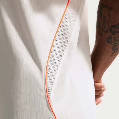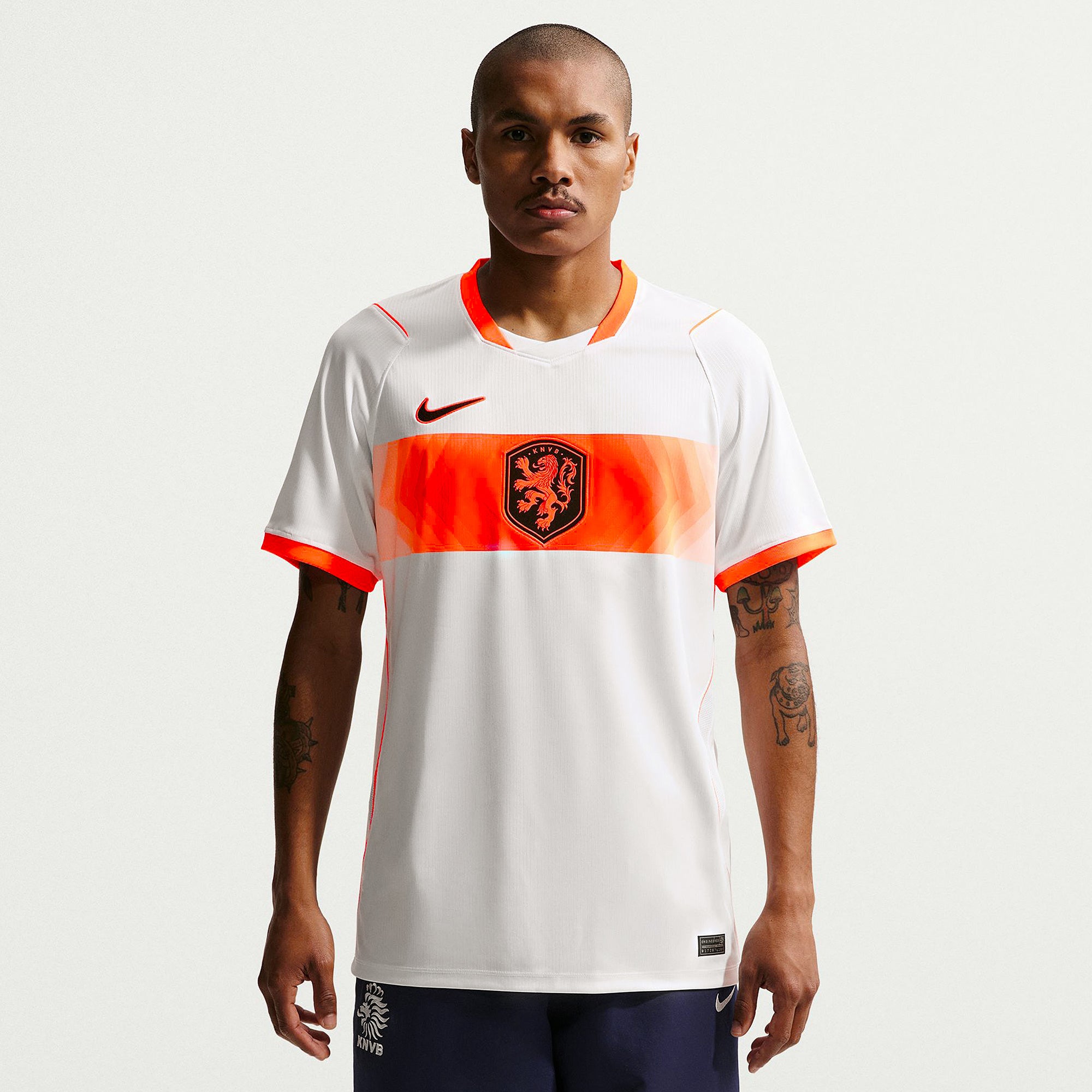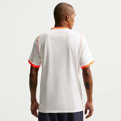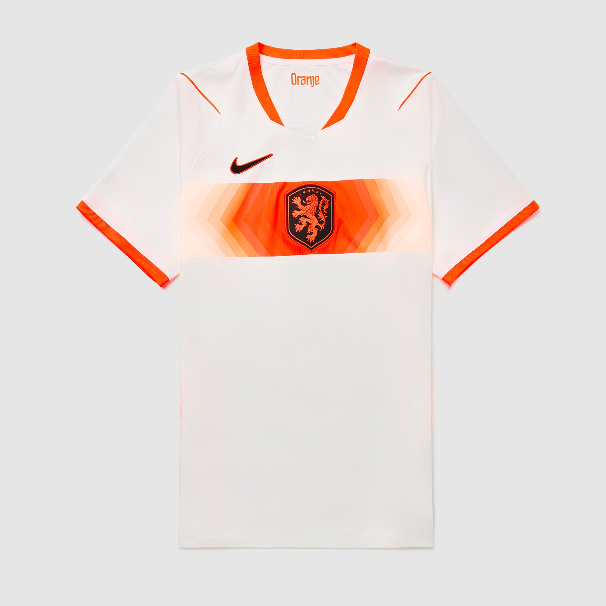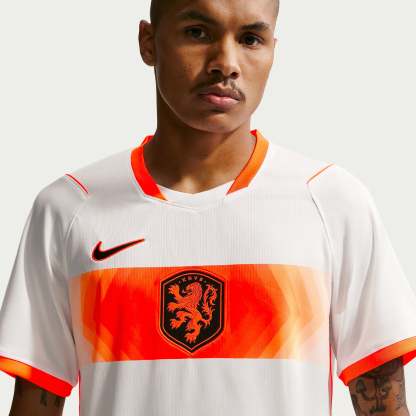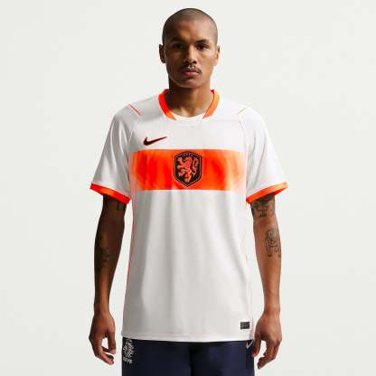 Based on the kits worn by Virgil van Dijk, Frenkie de Jong, Tijjani Reijnders, Matthijs de Ligt and the rest of a star-studded squad at the pinnacle of international football, the 2026 away shirt shows your support for the Oranje as they travel to North America, take on the likes of Japan and Tunisia in Group F, and set their sights on the FIFA World Cup trophy. A vibrant Hyper Crimson band across the chest puts a modern twist on the traditional white away colours, and the Koninklijke Nederlandse Voetbalbond (KNVB) rampant lion crest takes pride of place over the centre chest to display your passion for all to see.The ultra-lightweight, flexible construction provides full freedom of movement, so you can sprint across the turf, slide into tackles and leap into aerial challenges without restriction. Breathable, sweat-wicking Dri-FIT performance fabric promotes airflow, absorbs moisture and dries quickly to keep you cool, dry and comfortable as you push past your limits, whether you're straining to hit a new personal best in the gym, honing your technique in training, fighting to win every duel on the pitch or wildly celebrating a vital win at the 2026 World Cup.