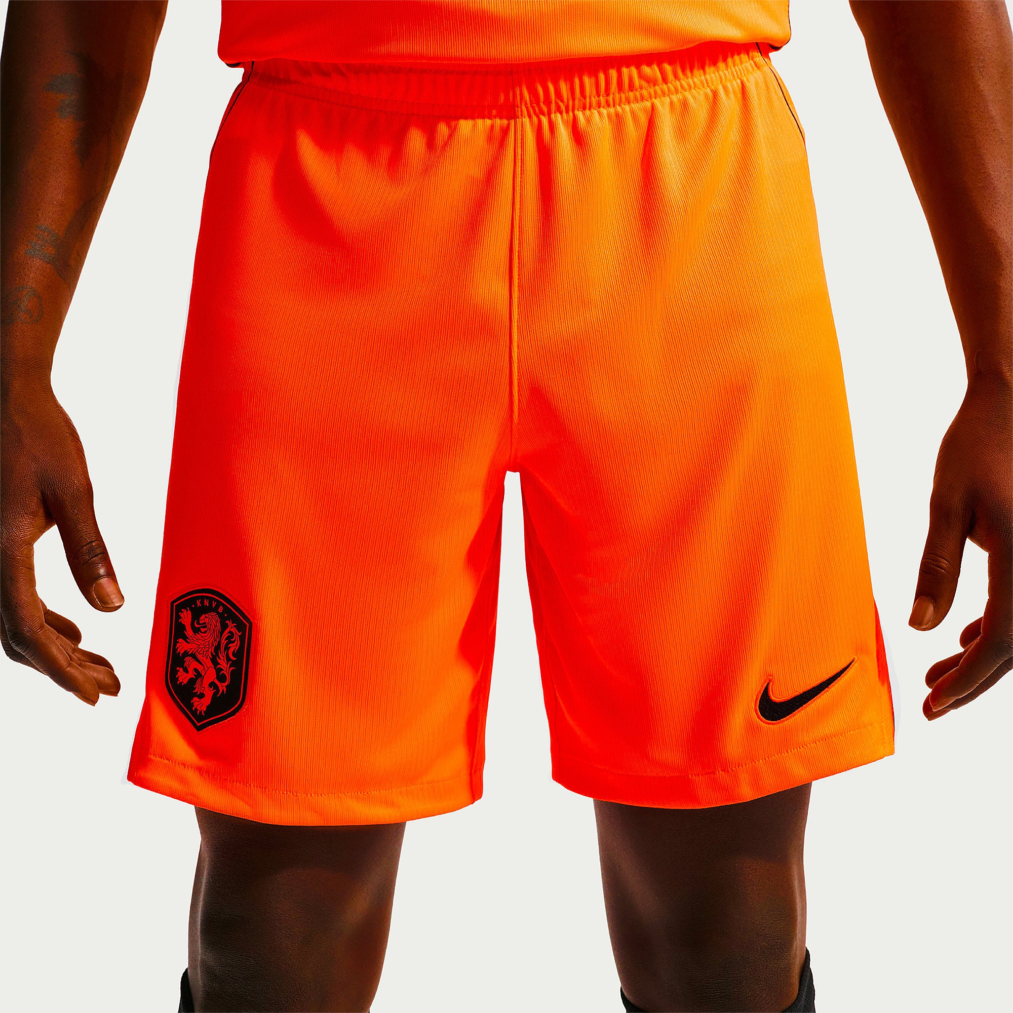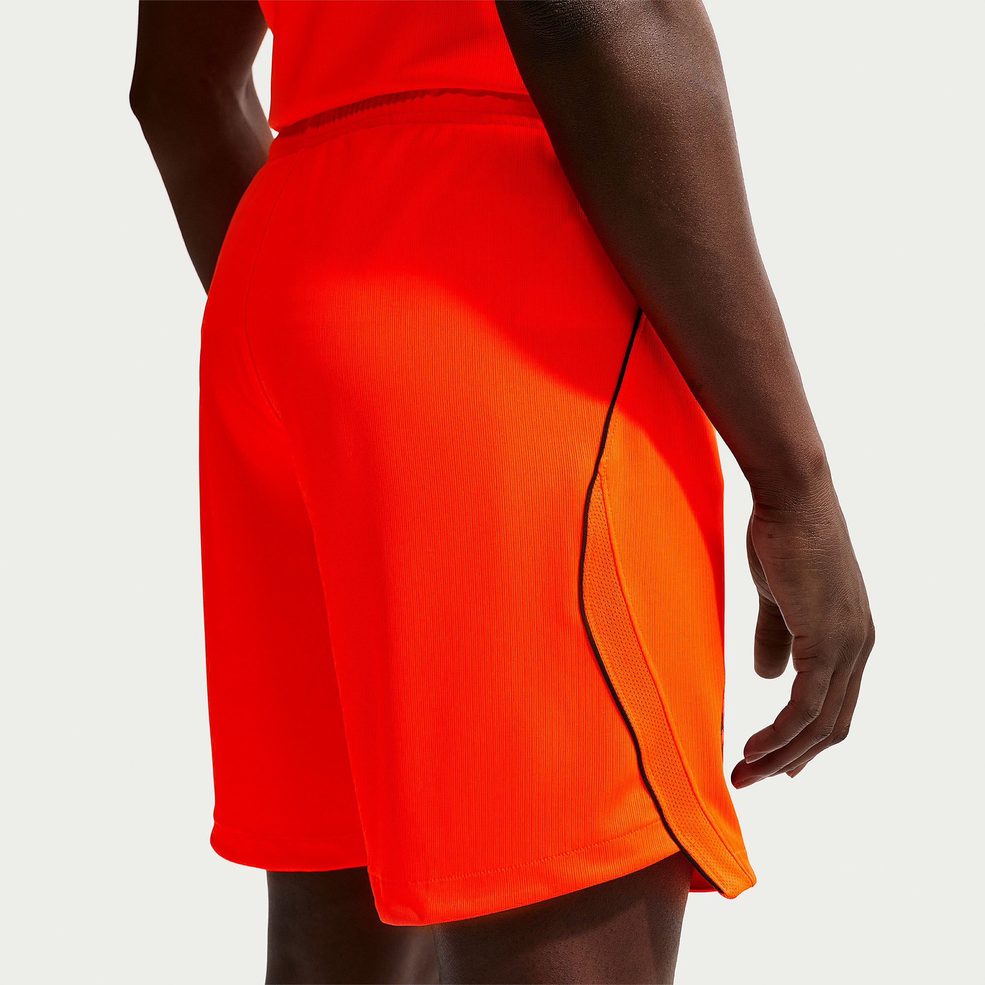 Based on the kits worn by Virgil van Dijk, Frenkie de Jong, Tijjani Reijnders, Matthijs de Ligt and the rest of a star-studded squad at the pinnacle of international football, the 2026 away shorts show your support for the Oranje as they travel to North America, take on the likes of Japan and Tunisia in Group F, and set their sights on the FIFA World Cup trophy. A vibrant Hyper Crimson base creates an eye-catching look that perfectly complements the new home and away kits, and the legendary Koninklijke Nederlandse Voetbalbond (KNVB) rampant lion crest takes pride of place over the right thigh to display your passion for all to see.The ultra-lightweight, flexible construction provides full freedom of movement, so you can sprint across the turf, slide into tackles and leap into aerial challenges without restriction. Breathable, sweat-wicking Dri-FIT performance fabric promotes airflow, absorbs moisture and dries quickly to keep you cool, dry and comfortable as you push past your limits, whether you're straining to hit a new personal best in the gym, honing your technique in training, or fighting to win every duel on the pitch. An adjustable elastic waistband secures your fit throughout the 90 minutes.
