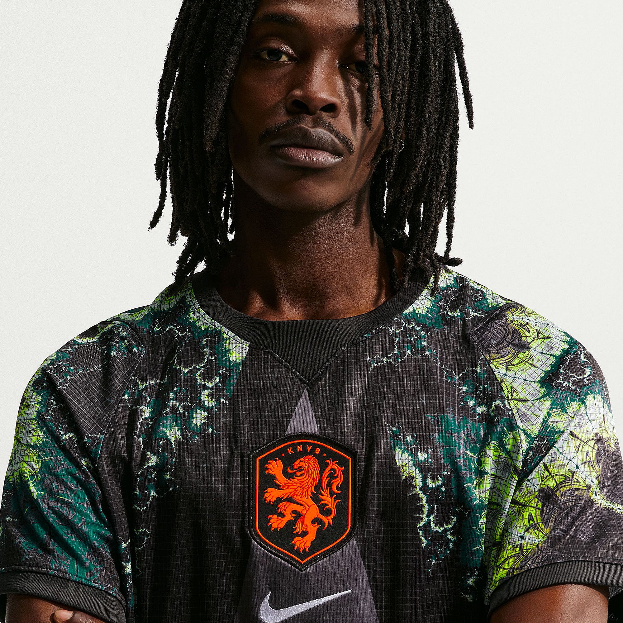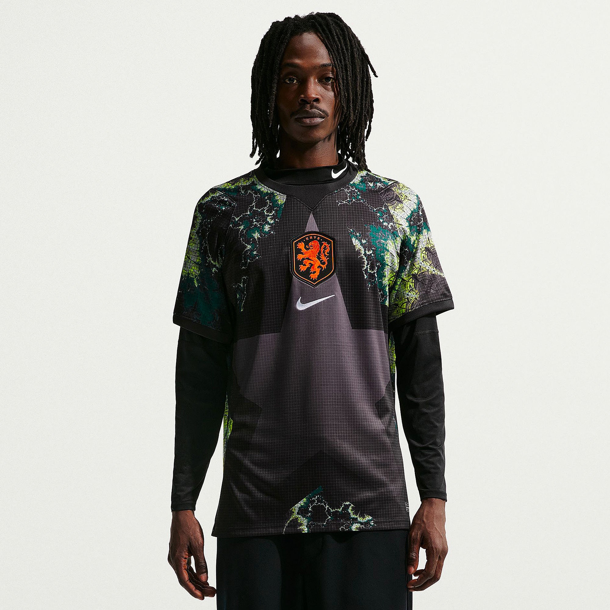 Based on the kits worn by Bart Verbruggen, Mark Flekken and the rest of the Netherlands goalkeeping group at the pinnacle of international football, the 2026 GK shirt shows your support for the Oranje as they travel to North America, take on the likes of Japan and Tunisia in Group F, and set their sights on the FIFA World Cup trophy. A smart black and Medium Ash base is enhanced with a bold star design and swirling tonal patterns to evoke the Walk of Fame and give shot-stoppers a chance to take centre stage and capture the spotlight, and the national crest emblazoned over your heart displays your passion for the world to see.The ultra-lightweight, flexible construction provides full freedom of movement, so you can leap to claim lofted balls, sprint off your line to smother a shot in a one-on-one and make split-second reflex saves to keep your side in the game throughout the 90 minutes. Breathable, sweat-wicking Dri-FIT performance fabric promotes airflow, absorbs moisture and dries quickly to keep you cool, dry and comfortable as you push past your limits, whether you're straining to hit a new personal best in the gym, honing your technique in training, or wildly celebrating a vital win at the 2026 World Cup.