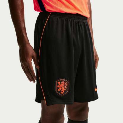 Based on the kits worn by Virgil van Dijk, Frenkie de Jong, Tijjani Reijnders, Matthijs de Ligt and the rest of a star-studded squad at the pinnacle of international football, the 2026 home shorts show your support for the Oranje as they travel to North America, take on the likes of Japan and Tunisia in Group F, and set their sights on the FIFA World Cup trophy. A smart black base is accented with vibrant Hyper Crimson detailing to create a versatile look that stays true to tradition, and the legendary Koninklijke Nederlandse Voetbalbond (KNVB) rampant lion crest takes pride of place over the right thigh to display your passion for all to see.The ultra-lightweight, flexible construction provides full freedom of movement, so you can sprint across the turf, slide into tackles and leap into aerial challenges without restriction. Breathable, sweat-wicking Dri-FIT performance fabric promotes airflow, absorbs moisture and dries quickly to keep you cool, dry and comfortable as you push past your limits, whether you're straining to hit a new personal best in the gym, honing your technique in training, or fighting to win every duel on the pitch. An adjustable elastic waistband secures your fit throughout the 90 minutes.