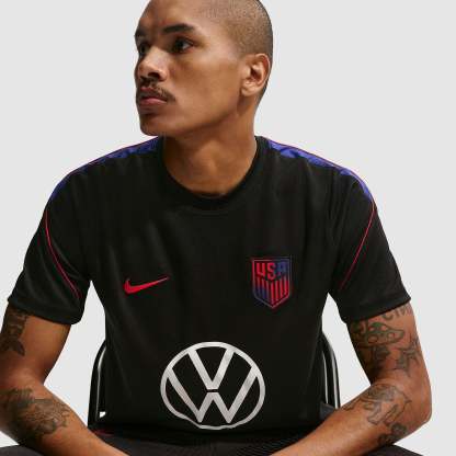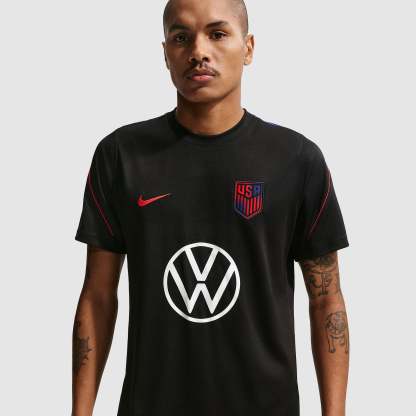 Part of the official USA 2026 World Cup training range, the Strike Jersey is worn by Tyler Adams, Folarin Balogun, Sergino Dest, Brenden Aaronson and Chris Richards as they hone their skills, take on the likes of Australia and Paraguay in Group D, and look to progress to the latter stages of their home World Cup. Bold black, Deep Royal Blue and Challenge Red colors create a versatile, sporty look that easily complements the rest of your workout wardrobe, and the United States Soccer Federation (USSF) crest emblazoned over your heart displays your passion for the world to see.